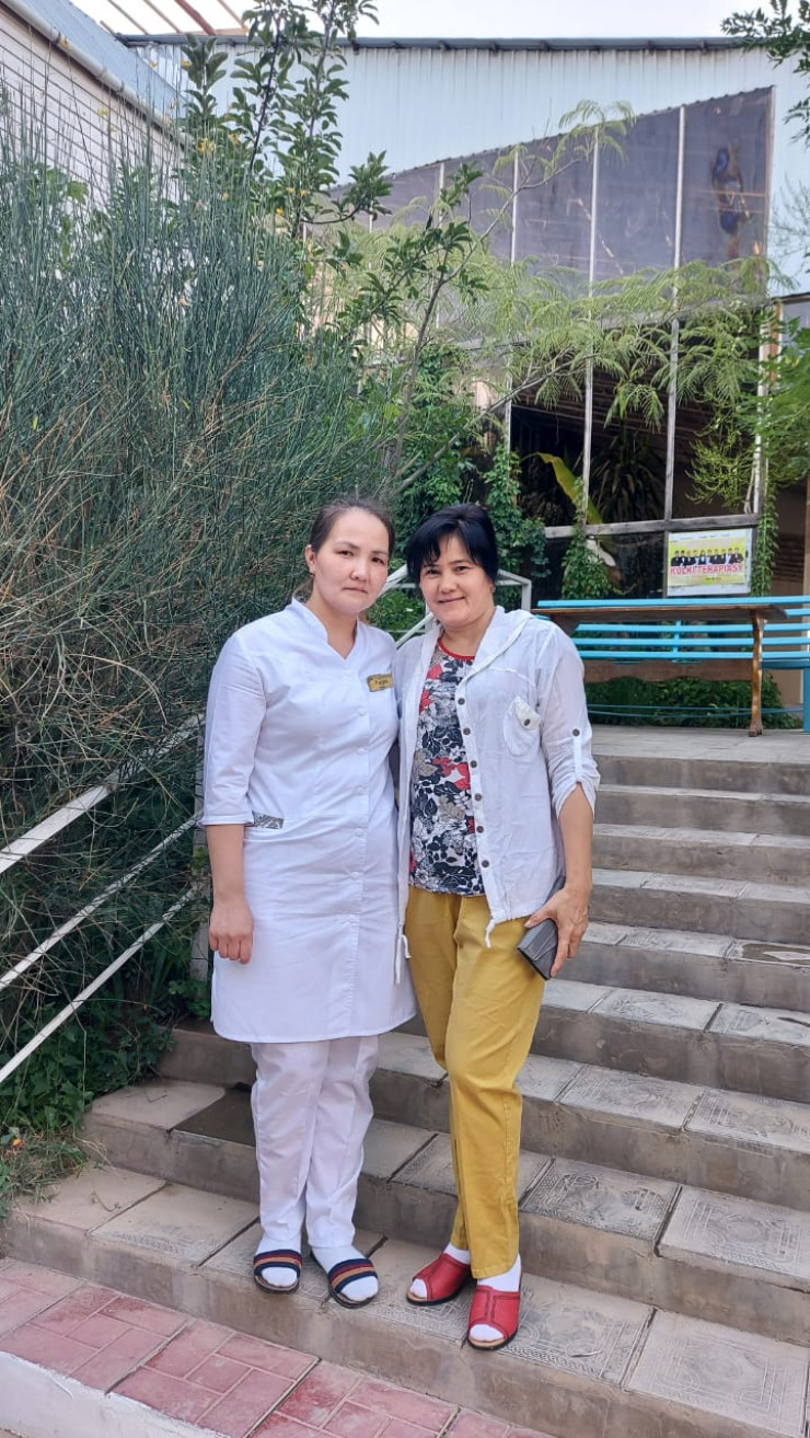 Лаура (слева на фото) работала медсестрой в санатории. Фото предоставлено братом Талгатом Джусуповым.