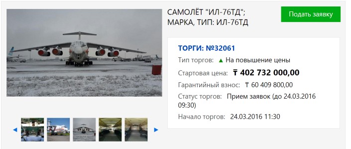По его словам, новой техники среди 17 лотов на продажу нет. "Мы продаем старые самолеты советского образца и вертолеты, которые были в свое время списаны. Они не летали, и мы их выставили на портал, какие-то на металлолом, какие-то на другие цели. "Ил-76ТД" - больше 20 лет. "Ан-12БК" - больше 50. Эта вся техника, на которой мы уже не летаем. За рубежом, например, эти самолеты не везде принимают - двигатели не проходят по шумам, к примеру. А замена двигателя обойдется так же, как и новый самолет. В основном покупателям будут интересны двигатели продаваемых самолетов, остальное пойдет на металлолом - летать они больше не будут", - сказал Досымбеков.