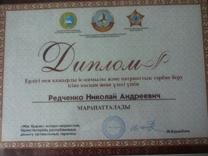 Позже указом Президента Республики Казахстан Редченко был награжден орденом "Айбын" ІІІ степени. Сейчас Николай работает в УВД города, полицейским ИВС. За плечами Николая 22 года службы в рядах полиции. Сейчас он в звании старшего сержанта. Он женат и воспитывает четверых детей. По словам Николая, он бы не хотел видеть сына в полиции. Труд очень тяжелый, да и порой неблагодарный.