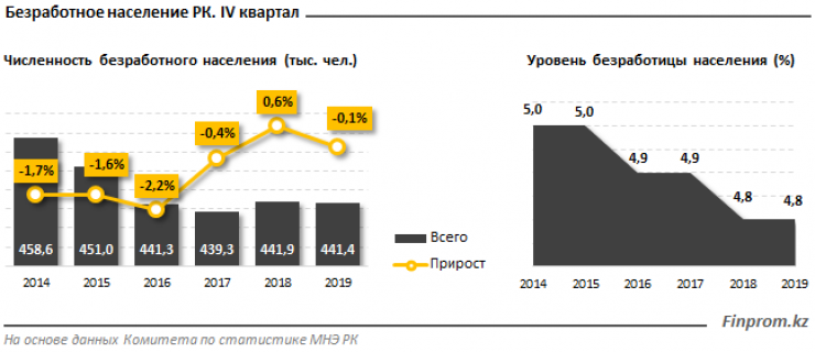 Тем временем численность безработного населения в стране составила 441,4 тысячи человек, сократившись на 0,1 процента по сравнению с аналогичным периодом 2018 года (441,9 тысячи человек). При этом значение уровня безработицы осталось без изменений - 4,8 процента.