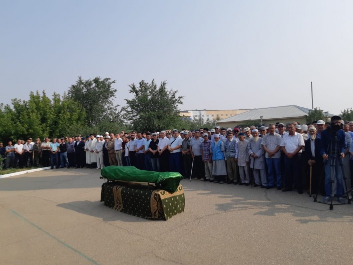 Погибшего егеря пришли проводить в последний путь около тысячи человек. Среди них были министр экологии, геологии и природных ресурсов Магзум Мирзагалиев и аким Карагандинской области Ерлан Кошанов. Они выразили соболезнования семье погибшего инспектора, передав его близким государственную награду - орден "Айбын" І степени, присужденный Президентом Касым-Жомартом Токаевым за мужество и самоотверженность, проявленные при исполнении служебного долга.