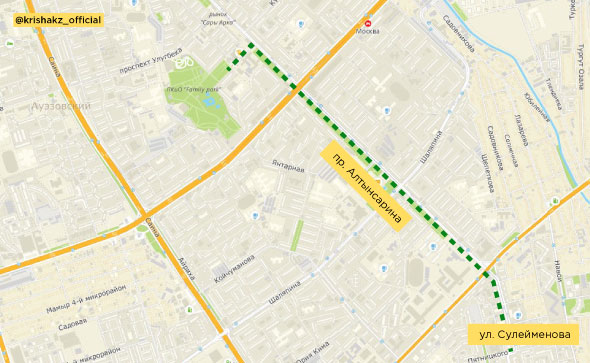 "Прогулочная зона будет расположена на западной стороне проспекта Алтынсарина. Она будет включать и объекты инфраструктуры: точки питания, туалеты. Сейчас мы проверяем возможность подключения к инженерным сетям. Дорожное полотно не будем трогать вообще. Пилотный проект прогулочной зоны в этом году хотим запустить на улице Шалова, около ТД "Керемет", которая расположена параллельно улице Сулейменова", - добавил Дуйсебек.