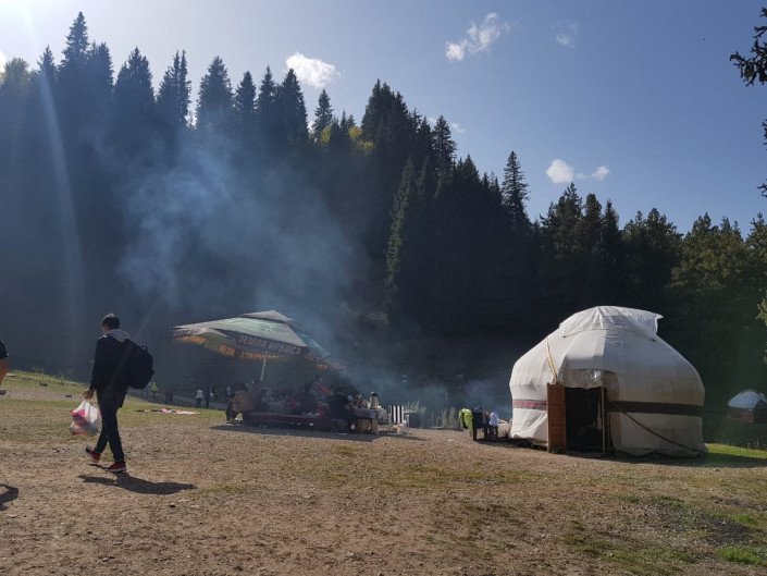 Алматинка Айжан Кошкенбаева рассказывает, что на Бутаковке предприниматели разместили юрты и жарят шашлыки.