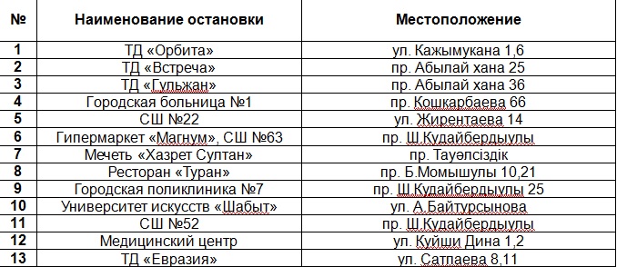 Список остановочных павильонов закрытого типа, где можно укрыться от непогоды:
