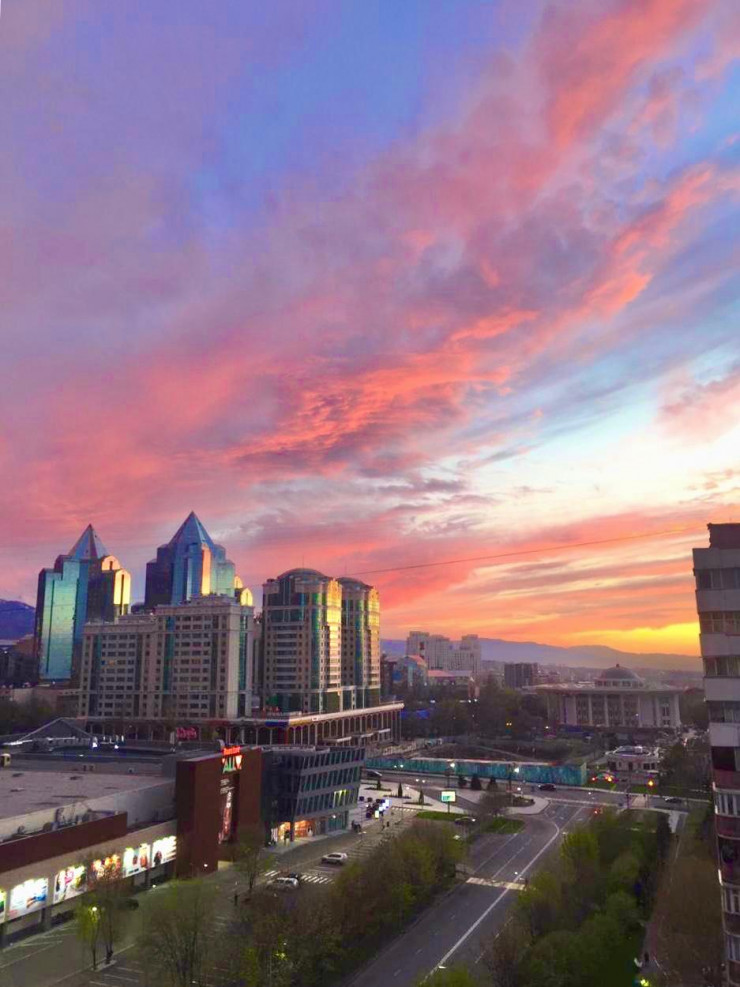 Во второй половине апреля над Алматы наблюдалось довольно редкое явление: в вечернее время небо окрашивалось в насыщенные розовые, пурпурные и приближенные к ним тона. Красочный природный феномен алматинцы наблюдали несколько раз на протяжении недели (с 17 по 24 апреля). Как оказалось, специалисты называют это явление "пурпурной зарей на закате", передает Tengrinews.kz.