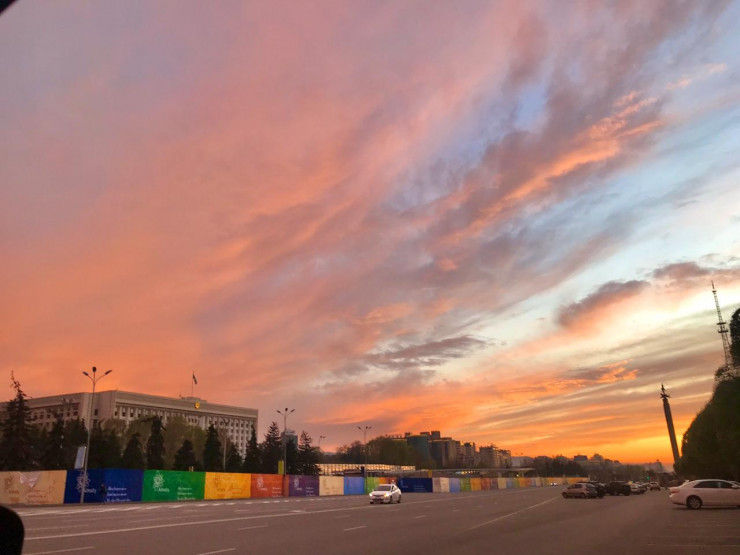 "Пурпурная заря на закате". Необычный феномен восхитил алматинцев