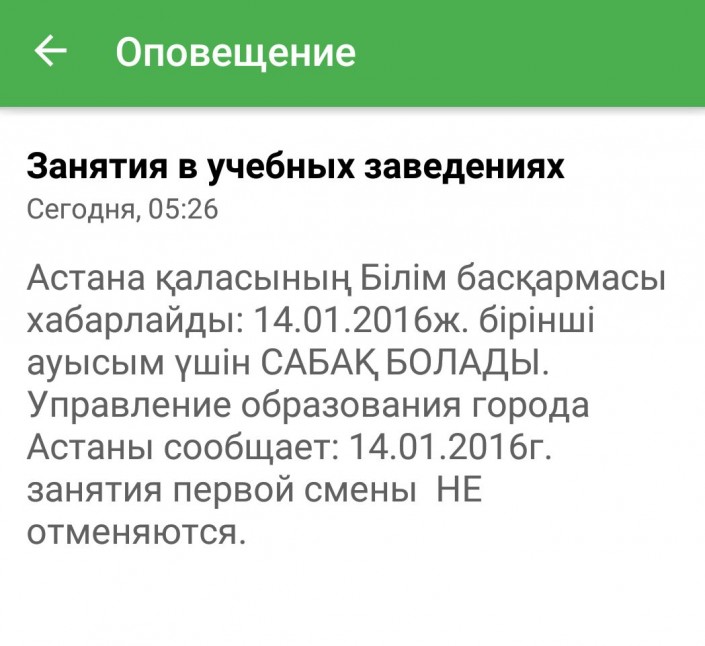 Push-уведомления об отмене занятий смогут получать жители Астаны Скриншот приложения