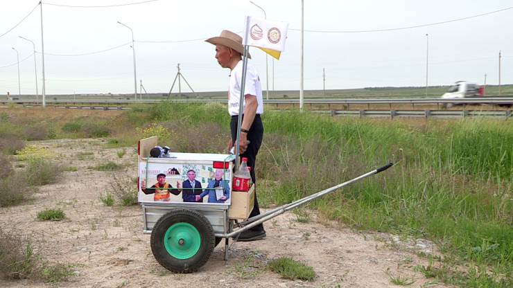 "Самым сложным испытанием для меня стал город Жезказган. Когда я выходил из Жезказгана в Кызылорду, был сильный снег и метель. Поэтому 140 километров мне пришлось пройти без сна за 28 часов. Потом, 13 апреля, я дошел до Кызылорды. Там дорога плохая, сломал свою тележку, у нее отлетели шины. Дальше мне было уже тяжело, и я начал хромать, поэтому два раза пришлось ночевать на улице", - поделился пожилой путешественник.