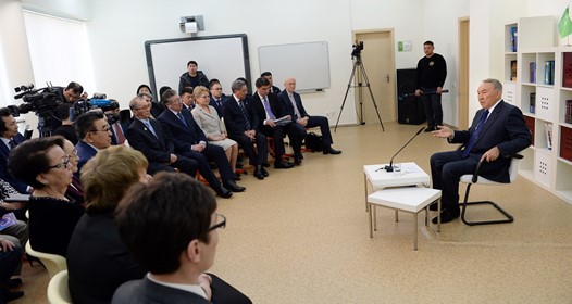 Елбасы Назарбаев зияткерлік мектебінде. 2014 жыл. © Akorda.kz