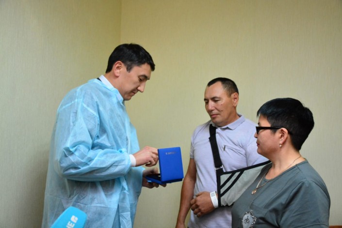 На минувшей неделе министр экологии, геологии и природных ресурсов Магзум Мирзагалиев навестил Оспанова в больнице и передал ему орден "Айбын" II степени.