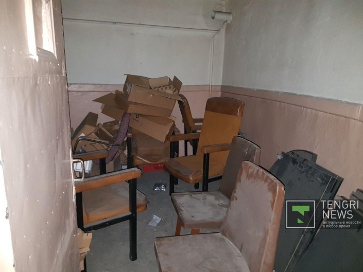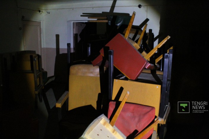"Мы много раз убирались. Но сюда спускаются все кому не лень. Я ругаюсь, чтобы не давали ключи. Вон, люстры все сломали. Здесь остатки мебели, то, что на дрова не пошло. Мы кое-какие вещи в свое время продали "Казахфильму" для реквизитов. А телефон, скорее всего, принадлежал сотруднику ХОЗУ", - продолжает собеседница.