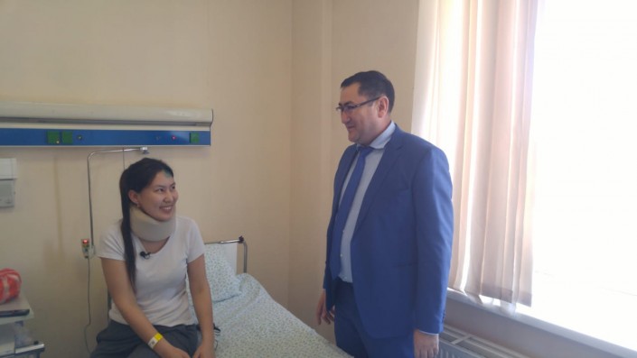 "От сильного столкновения я ударилась головой о лобовое стекло машины. Потеряла сознание. Мой помощник и водитель вышли из машины, вывели меня. Мой коллега оказал первую помощь, наложил мне повязку на лоб. Я пришла в себя и оглянулась по сторонам, увидела, что произошла сильная авария, вокруг было много людей. Я поняла, что много пострадавших, собралась с мыслями и сразу же побежала к пострадавшим", - вспоминает Камар Сатбаганбетова.
