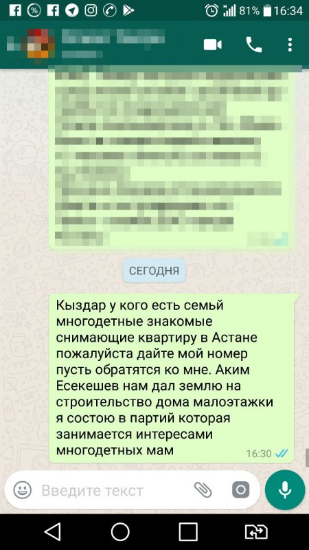 WhаtsАpp-рассылку о выдаче Исекешевым земли многодетным семьям назвали вирусной, предает Tengrinews.kz.