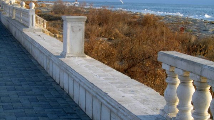 На всей территории набережной резко бросаются в глаза участки разрушенной балюстрады. "Вырванные" части балюстрады разбросаны за ограждением.