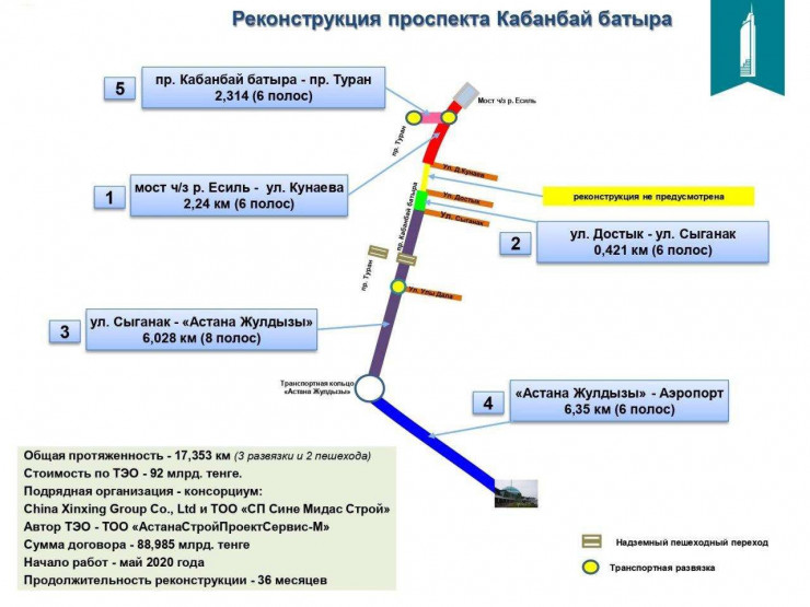 В 2022 году планируют начать реконструкцию проспекта Кабанбай батыра в Нур-Султане стоимостью в 92 миллиарда тенге. Об этом сообщили в нацкомпании "КазАвтоЖол" в ответ на запрос корреспондента Tengrinews.kz.