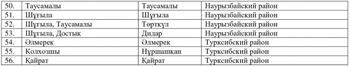 Некоторые названия микрорайонов останутся прежними. Это микрорайоны Тастыбұлақ, Таусамалы, Шұғыла, Таужолы, Құрамыс, Наурыз и другие.
