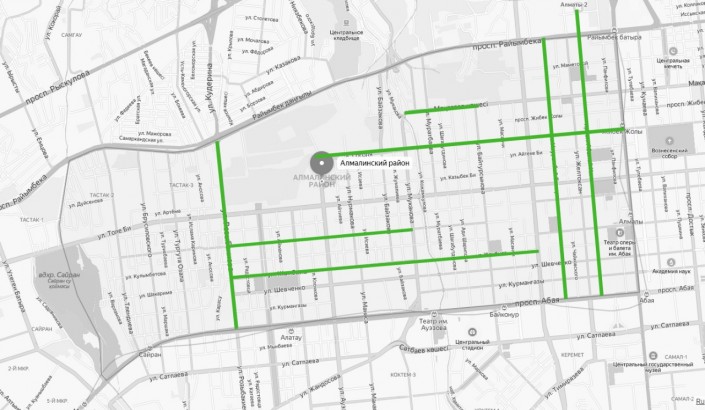 А вот в Ауэзовском районе ремонтировали 13 улиц вместо запланированных ранее 16. Ремонт так и не дошел до транспортных развязок на пересечении улиц Саина и Жандосова, улицы Саина и проспекта Абая, улиц Саина и Шаляпина. Кроме того, ремонт все еще идет на внутриквартальном проезде от улицы Шалова до школы № 127 и на улице Тургенская от улицы Яссауи до дома № 78.