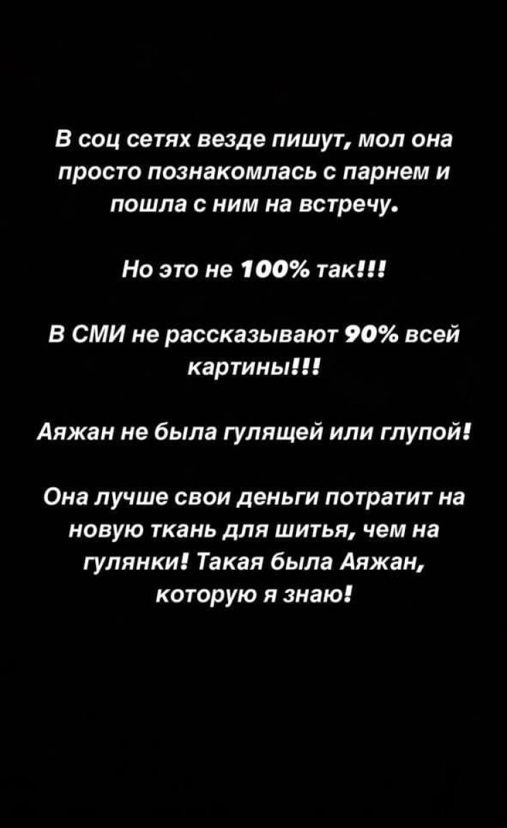 Текст на этом скриншоте и последующих написала одна из сестер Аяжан Едиловой