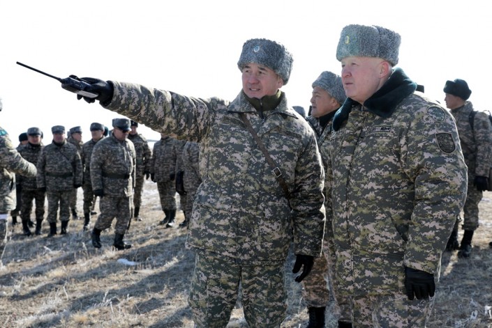 Первый заместитель министра обороны – начальник Генерального штаба ВС РК генерал-лейтенант Мурат Майкеев в ходе рабочей поездки в Алматинскую область провел рекогносцировку района оперативно-стратегического командного штабного учения "Айбалта-2019".