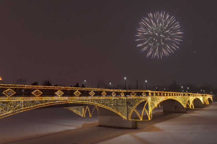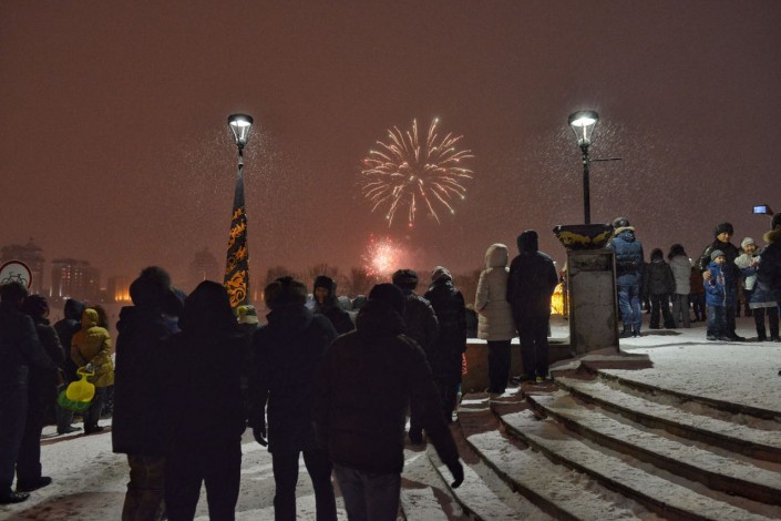 Фейерверк длился около десяти минут, он был запущен с набережной реки Ишим. В небе прогремело несколько десятков залпов.
