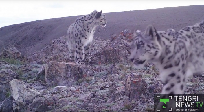 Снежные барсы с годовалыми детенышами попали в объектив фотоловушек в Джунгарском Алатау, сообщает корреспондент Tengrinews.kz.