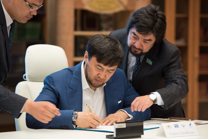 Кайрат Сатыбалды (в центре) и Бекболат Тлеухан (справа). Фото © Sputnik/Болат Шайхинов