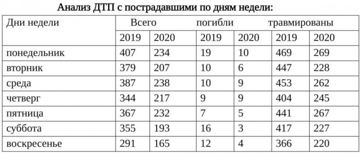 Чаще всего ДТП совершают в понедельники, наименьшее количество происшествий на дорогах - по воскресеньям.
