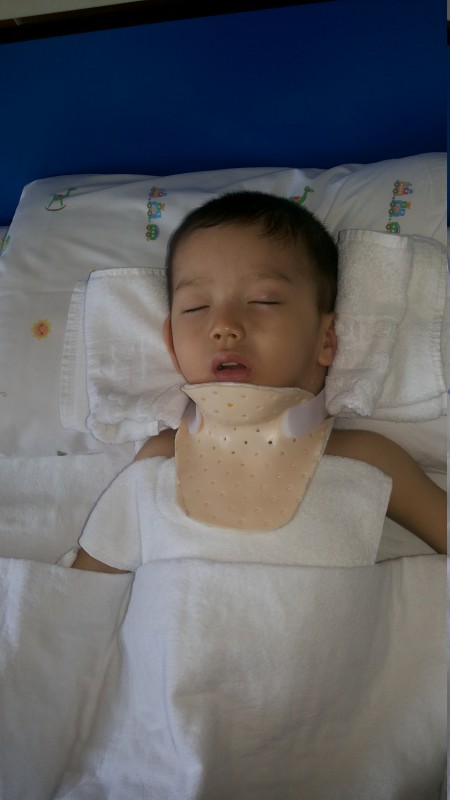 Впервые травму заподозрили врачи в 5 месяцев, так как ребенок самостоятельно не переворачивался, плохо держал голову и постоянно не спал. Еще один важный симптом - у него не усваивался кальций, руки были согнуты во внутрь, ножки вытянуты. При этом гипопаратиреоз, характеризующийся дефицитом кальция в организме, у малыша лабораторно не подтверждался. Подтвердить все догадки удалось лишь спустя восемь месяцев после рождения малыша. Родители продали квартиру, на собранные деньги в 2011 году они повезли маленького Алемжана в Израиль, где ребенку наконец-то сделали МРТ шейного отдела и поставили диагноз: "Родовая краниоспинальная травма шейного отдела. Но оперировать мальчика израильские медики не взялись из-за слишком маленького возраста.