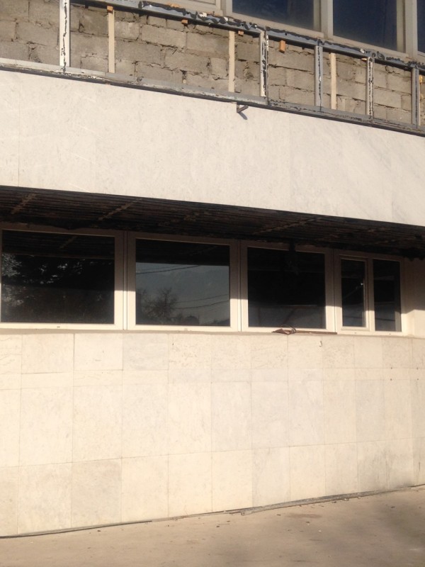Женщину встревожило, что со здания сняли солнцезащитные алюминиевые решетки, которыми оно было обнесено.