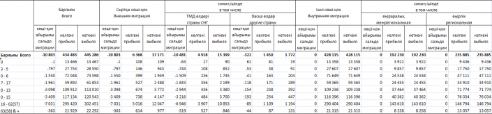 Уезжали как из городов, так и из сельской местности. Городского населения выбыло: в страны СНГ - 13 226 человек, в другие страны - 1 335 человек. Из сельской местности в СНГ переехали 2 173 человека, в другие страны - 437 сельчан.