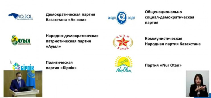 Партия Nur Otan, "Ак жол", Коммунистическая народная партия Казахстана, "Ауыл", "Бiрлiк" и Общенациональная социал-демократическая партия. Вышеуказанные политические партии являются действующими. Сведения о реорганизации, ликвидации вышеуказанных партий отсутствуют. Все партии имеют свои структурные подразделения", - сказала вице-министр юстиции Наталья Пан на заседании Центризбиркома.