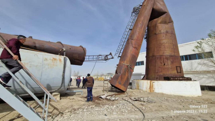 Еще одно ЧС в связи с непогодой произошло в Казалинском районе. Здесь шквальный ветер сорвал металлическую трубу предприятия "Қазалы Теміржолжылу".