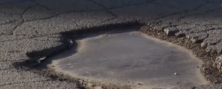 По всему пути выбоины. До самой металлической конструкции. Машинам приходится рискованно лавировать и объезжать препятствия.
