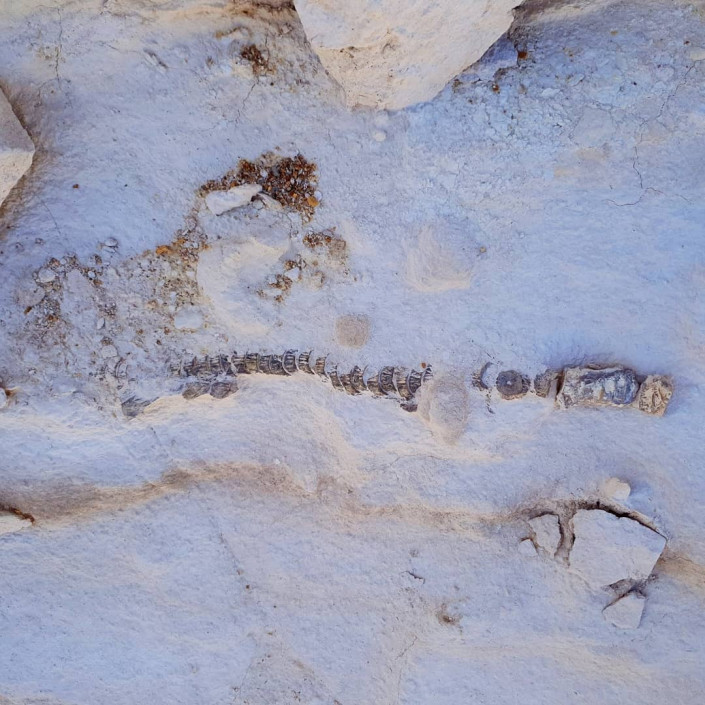 "Через неделю я вернулся к месту находки и залил останки полимерным клеем, чтобы извлечь их и они не рассыпались. Клей не высох, пришлось оставить до этой субботы. Прогноз показал сильный дождь, я боялся, что его размоет, и поехал забрать, несмотря на погоду.