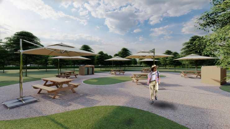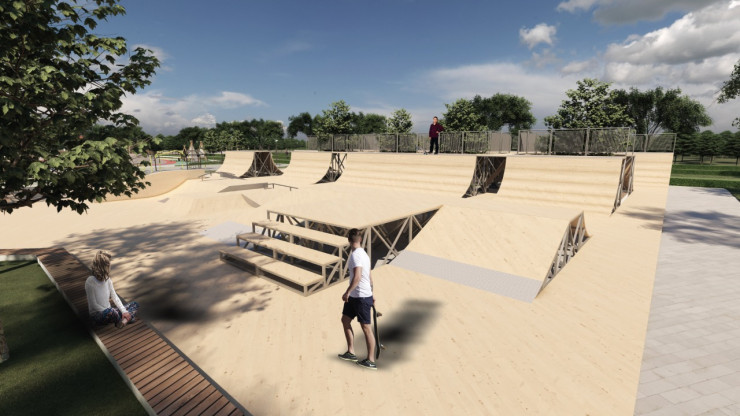 Так как в городе намерены развивать массовый спорт, в парке появятся теннисные корты, баскетбольные площадки, скейтпарки, зоны для пикников с навесами.