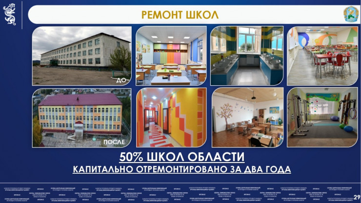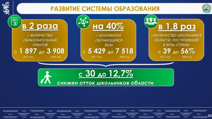 В целом в системе образования происходят кардинальные изменения. В регионе полностью обновлен устаревший компьютерный и автобусный парки. Все школы оснащены видеонаблюдением. Практически закрыт дефицит учителей. За 2 года капитально отремонтирована половина всех школ области.