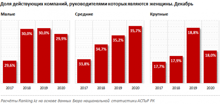 "Доля действующих компаний, руководителями которых являются женщины, третий год подряд составляет 30 процентов", - отмечают специалисты.