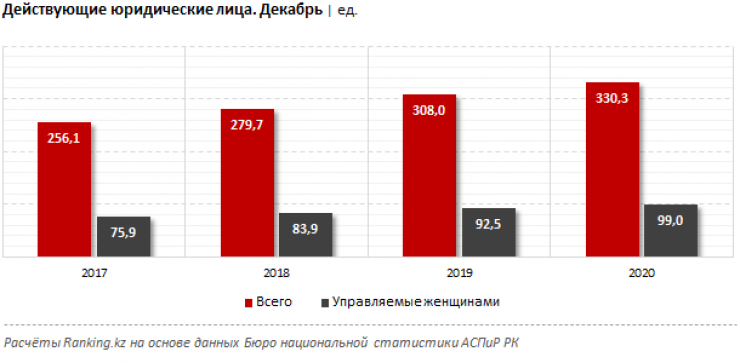 Согласно данным экспертов, по стравнению с прошлым годом в Казахстане увеличилось количество частных организаций. Так, к началу этого года в стране числится более 330 тысяч компаний. Из них руководителями являются женщины в 99 тысячах компаний.