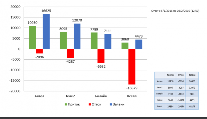 Наибольший приток абонентов у Altel - 16 625, на втором месте Tele 2 (12 070), далее - Beeline (7 111 абонентов) и Kcell - 4 473.