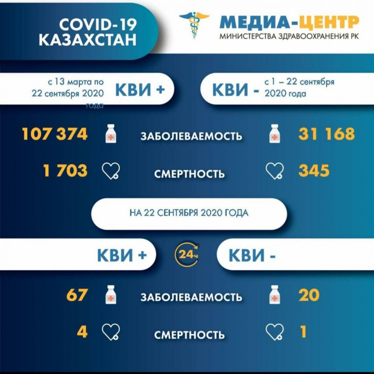 Кроме того, стало известно, что в стране 21 сентября выявлено 20 новых случаев пневмонии с признаками COVID-19. Всего с начала ведения статистики зафиксировано 31 168 случаев болезни.