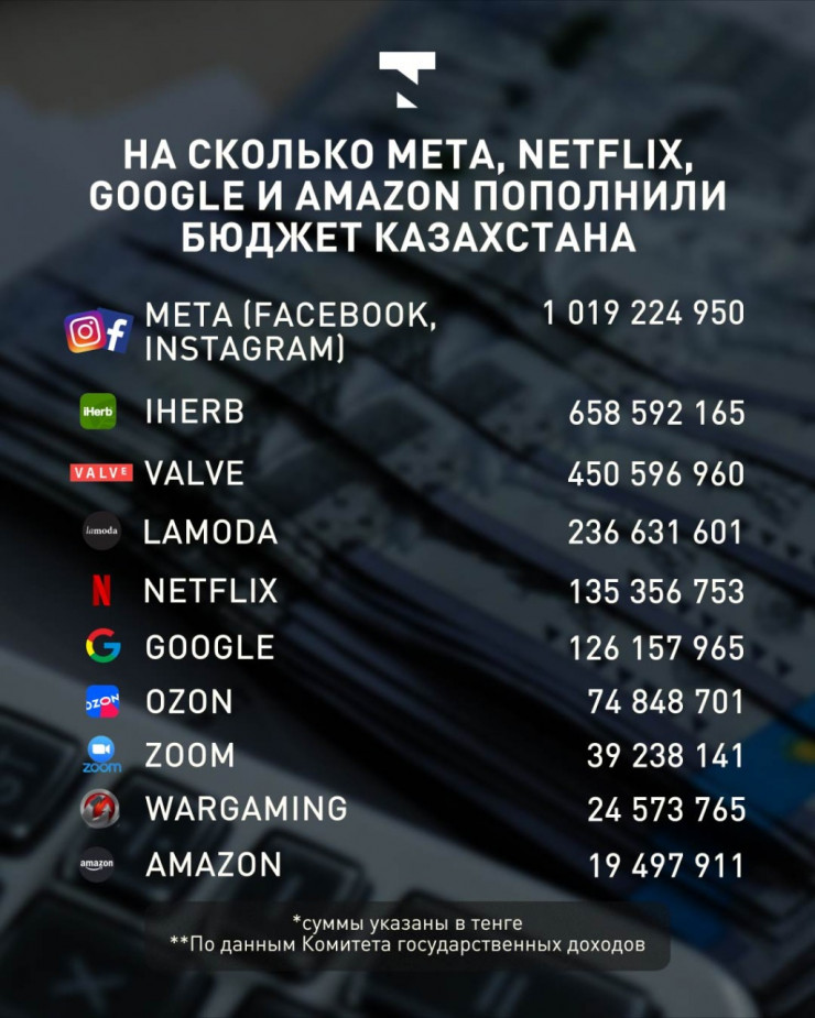 На сколько Meta, Netflix, Google и Amazon пополнили бюджет Казахстана