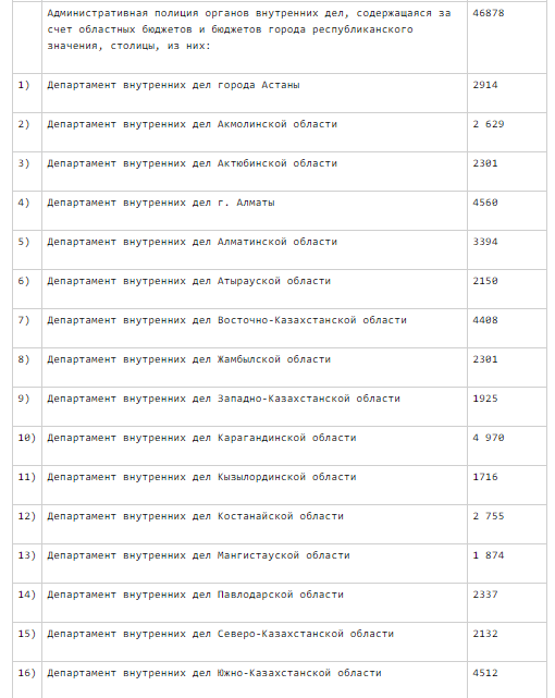 им государственных учреждений" можно узнать, что штат полицейских в Алматы составляет 4 560 человек.