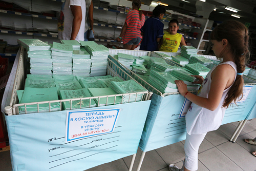 В Астане простые тетради стоят от восьми до 10 тенге, общие - от 60, ручки от 20 тенге, карандаши и фломастеры - от 100, краски - от 200, линейки - 30-35 тенге за штуку. Дневник для школьника в столице можно купить за 200 тенге, ранцы стоят от 2300 тенге. Туфли на девочек - от тысячи, на мальчиков - от 500. Школьная форма на мальчика (тройка) стоит от двух тысяч тенге, на девочку - от 4500. По отдельности сарафаны, юбки, брюки - по тысячи тенге, жилетки - по 500, пиджаки - по 1500 тенге.