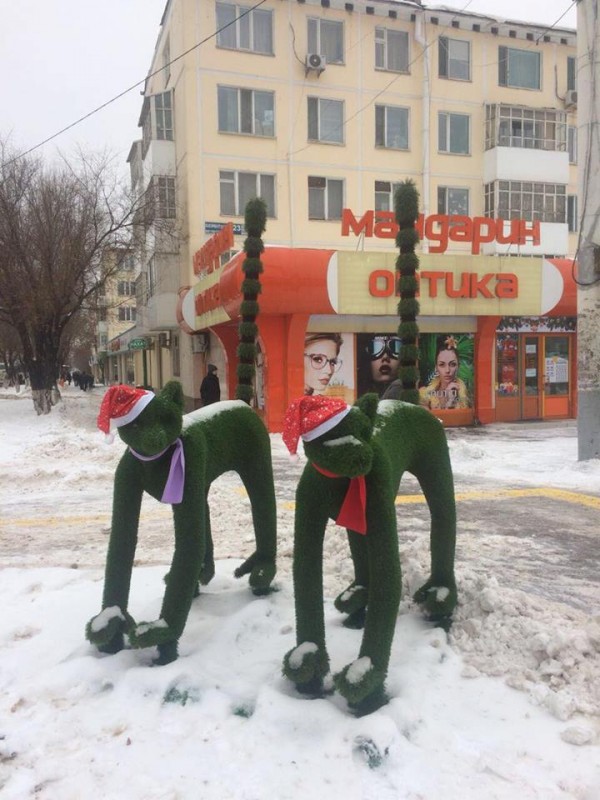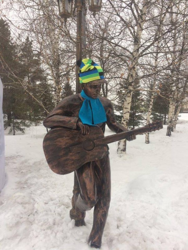 "По прогнозу погоды несколько дней будет снег, и городские персонажи напоминают вам о необходимости одеваться теплее!!!" - написал в Facebook Арман Турлубек.