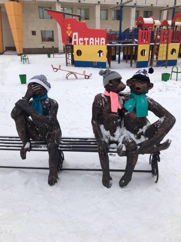 Скульптуры в Астане одели по-зимнему