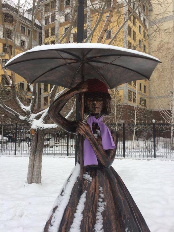 Шапки и шарфы надели на скульптуры в Астане, передает Tengrinews.kz. Об этом сообщил аким столичного района Сарыарка Арман Турлубек.