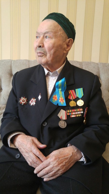 "Мы просились на фронт, чтобы нас взяли. Нам сказали: "У вас остался один год, закончите учебу, потом заберем". И правда, в 1942 году мы экзамены сдали. Мне дали направление на работу, но я поехал в военкомат и нас забрали в армию. Тогда в Акмолинске, недалеко от города, в степи был военный городок. Нас готовили в течение месяца. В основном это была строевая подготовка (смеется ветеран). Потом учили стрелять - три пули давали, стреляли из винтовки в мишень. Я тремя пулями заработал 25 очков, сказали, хорошо стреляю. Затем наш полк отправили на фронт", - рассказывает ветеран, отмечая все детали.