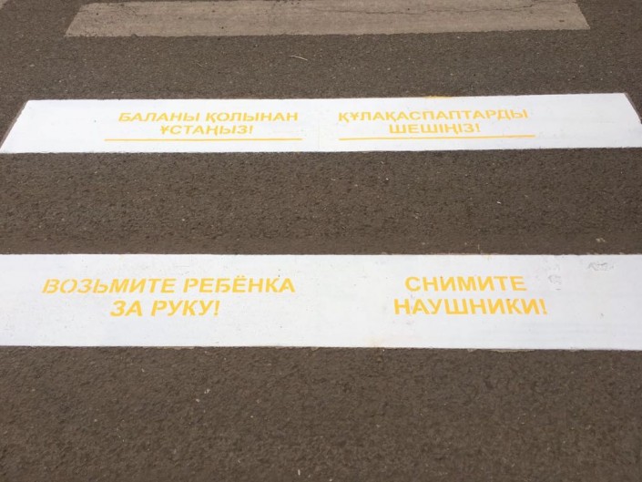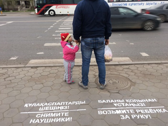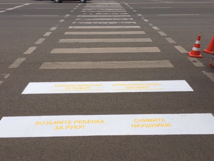 "Управлением административной полиции ДВД Астаны в качестве профилактических мер по предупреждению дорожно-транспортных происшествий в части наезда транспорта на пешеходов внесены предложения по нанесению надписей на тротуары перед пешеходными переходами: "Возьмите ребенка за руку!", "Снимите наушники!", "Посмотрите по сторонам!", - сообщили в ДВД Астаны.