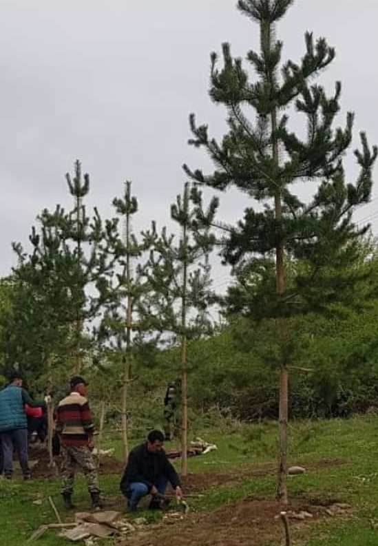 Посадка сосен у въезда в село Тургень.