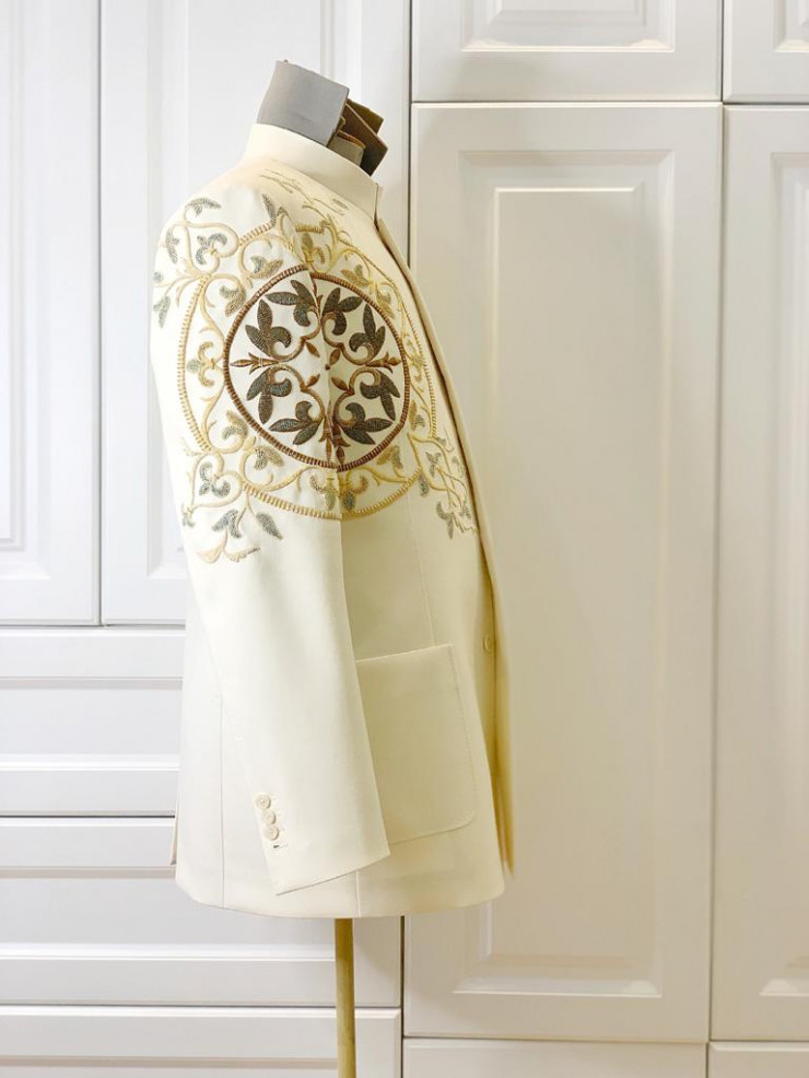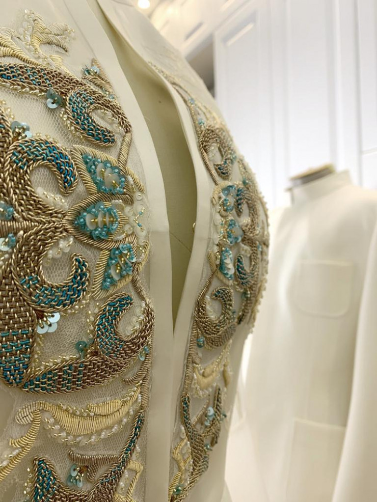 "Сначала идет подборка материалов, делаются многочисленные образцы. Даже во время пошива бывают моменты, когда все может поменяться на 180 градусов, и для этого нужно время. Для полного удовлетворения хотелось бы больше времени. Конечно, моя команда сработала на отлично. Были и бессонные ночи, так как орнаменты нужно было вышивать вручную, все должно было быть идеально", - отметила Виолетта.